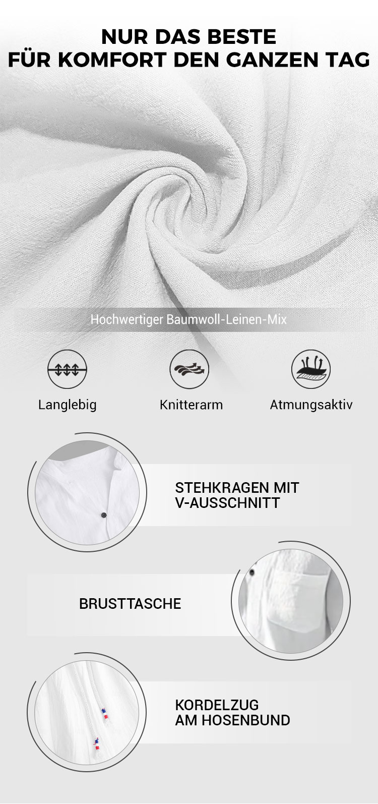 🌿💧Modischer Herren-Zweiteiler aus Baumwoll-Leinen: Oberteil & Hose
